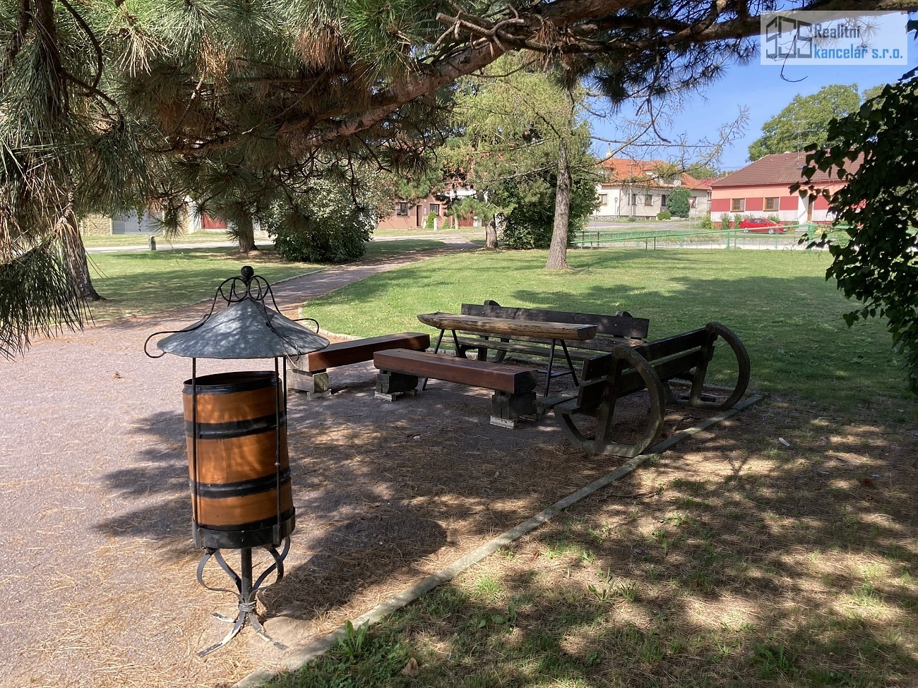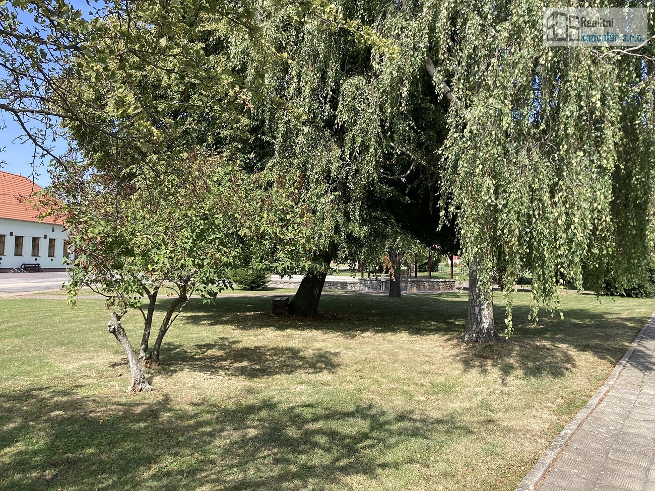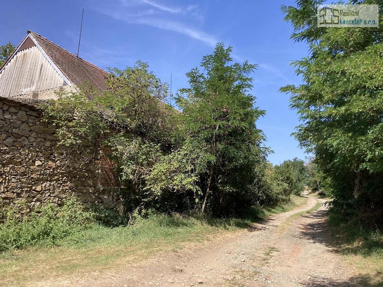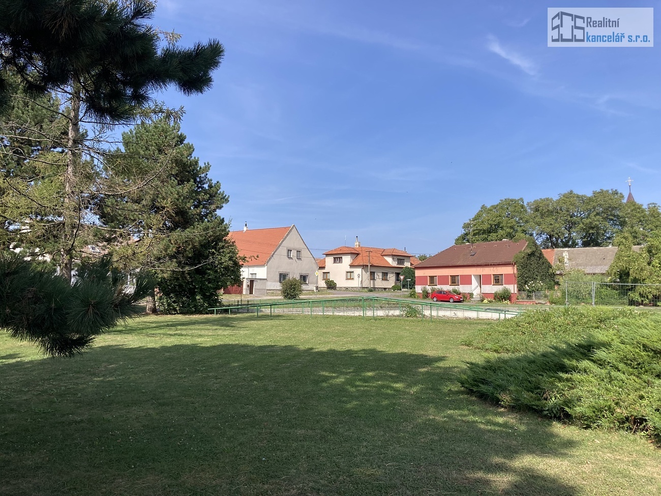 Nemovitost se nachází na pěkném klidném místě na návsi obce, u nově zrekonstruovaného obecního parku s Kaplí sv. Cyrila a Metoděje. Pozemek je přístupný ze dvou protilehlých stran, zasazený v rovinatém terénu. Uliční část domu má severozápadní orientaci, zahrada směřuje na jihovýchod. Pozemek má tvar obdélníku o stranách 26,5 x 111 x 28 x 104 metry. Na uliční severozápadní straně pozemku se nachází rodinný dům s průjezdem a půdorysem tvaru písmene L. Na protilehlé straně pozemku přístupné z obecní cesty stojí zděná stodola s vjezdem o výměře 163 m².